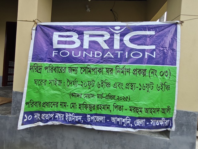 Md. Hafizur Rahman, an irregular day laborer, earns about87 to 9 thousand taka per month. He and his wife live in Sathkhira with their three children. He lives in a house that is only one room and is also in a very shabby condition. This house was built long ago and is their ancestral property. They applied for the help from BRIC Foundation to build their house, as they can’t afford to rebuild the house with their own income.